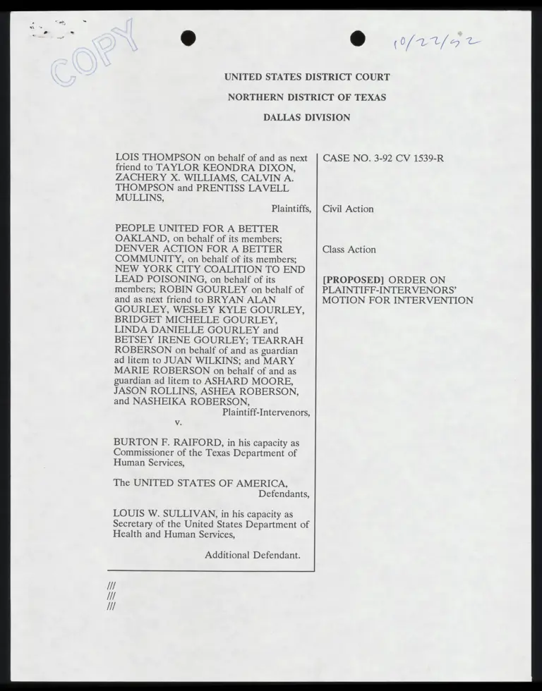 Proposed Order on Plaintiffs' Motion for Intervention