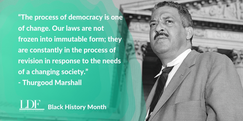 Explore more than 80 years of bold and visionary civil rights leadership. The Legal Defense Fund (LDF) was founded under the leadership of Thurgood Marshall in 1940, at a time when the nation’s aspirations for justice and due process of law were stifled by widespread state-sponsored racial inequality. This timeline chronicles LDF’s journey from that era to the present. Through it all, LDF’s mission has always been transformative: to achieve racial justice, equality, and inclusivity.