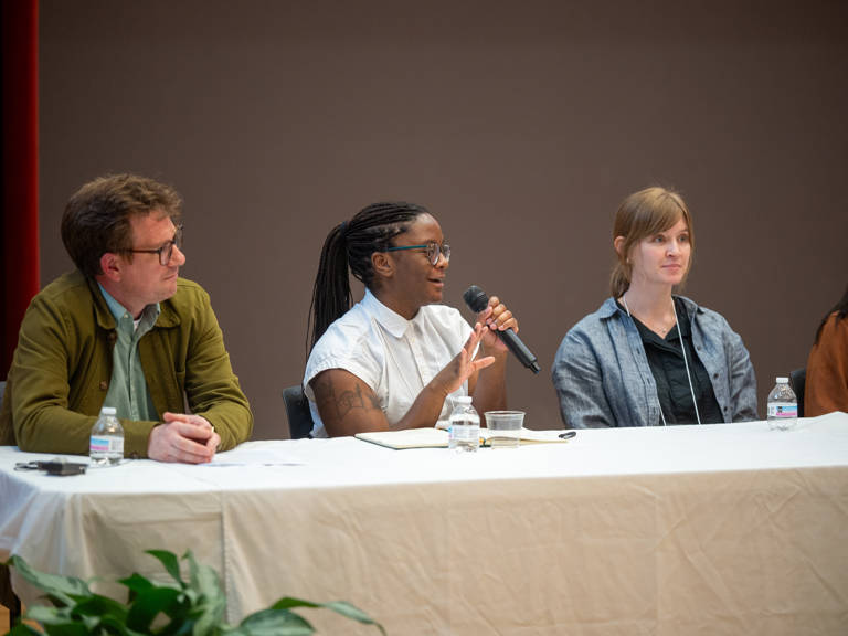 The second panel session, “History Is a Call to Action: Building the Record and Imagining the Future,” focused on different methods and possibilities for leveraging LDF’s rich history to defend past gains and create a more just future. Interdisciplinary panelists Leah Aden, Jack Boger, Renée Alexander Craft, Kayla Jenkins, Danita Mason-Hogans, and Karla McKanders shared their own experiences with and ideas for activating history in courtrooms, classrooms, creative works, and community organizing.
